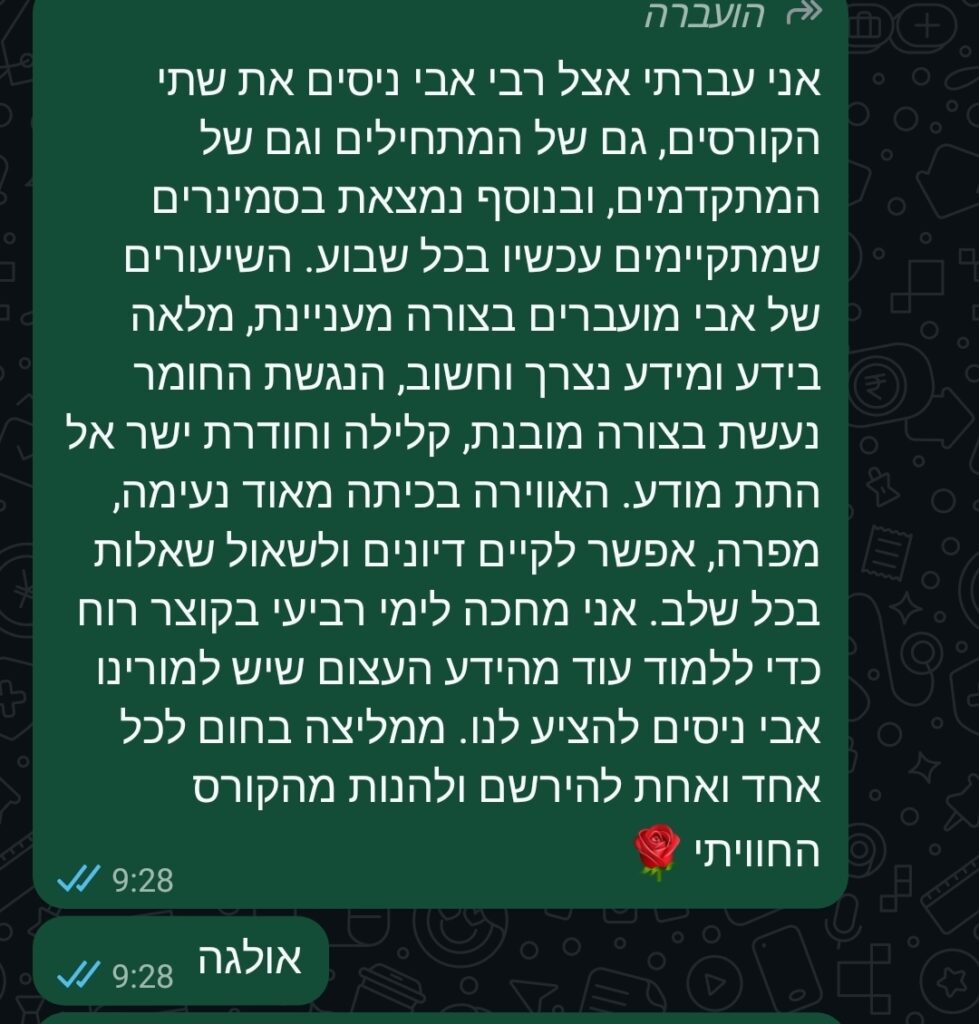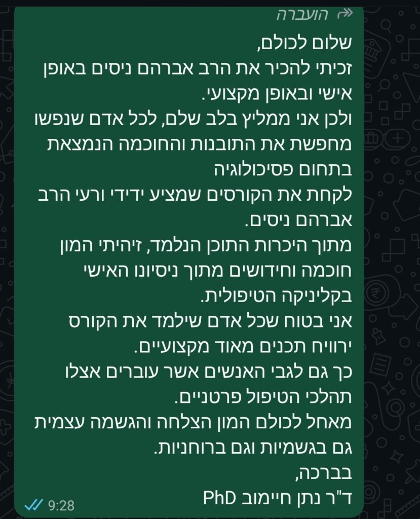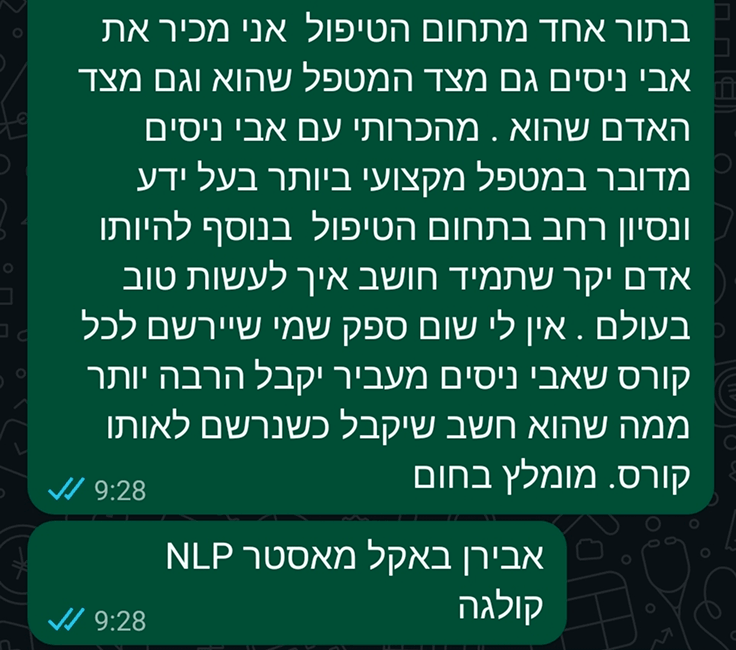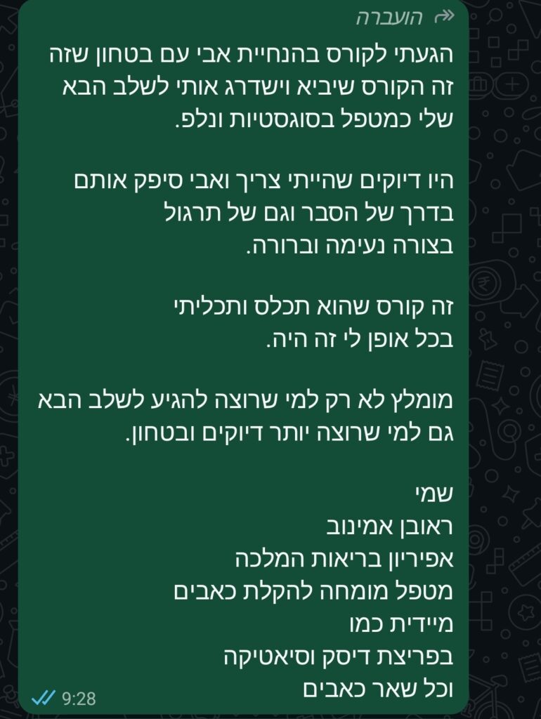 ברוב המקומות, ברגע שנגמר השיעור האחרון – אתם נשארים לבד. כאן זה עובד אחרת. אני (אבי ניסים) לא מחפש בוגרים עם תעודה בארון, אלא מטפלים מצליחים בשטח.