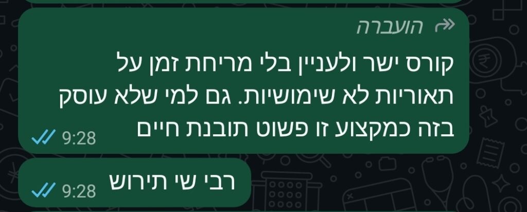 לכן, ההכשרה כוללת ליווי מלא וצמוד שלי עד להשגת היעדים. אנחנו לא נפרדים עד שאנחנו מסמנים "וי" על שתי המטרות הקריטיות שלך: